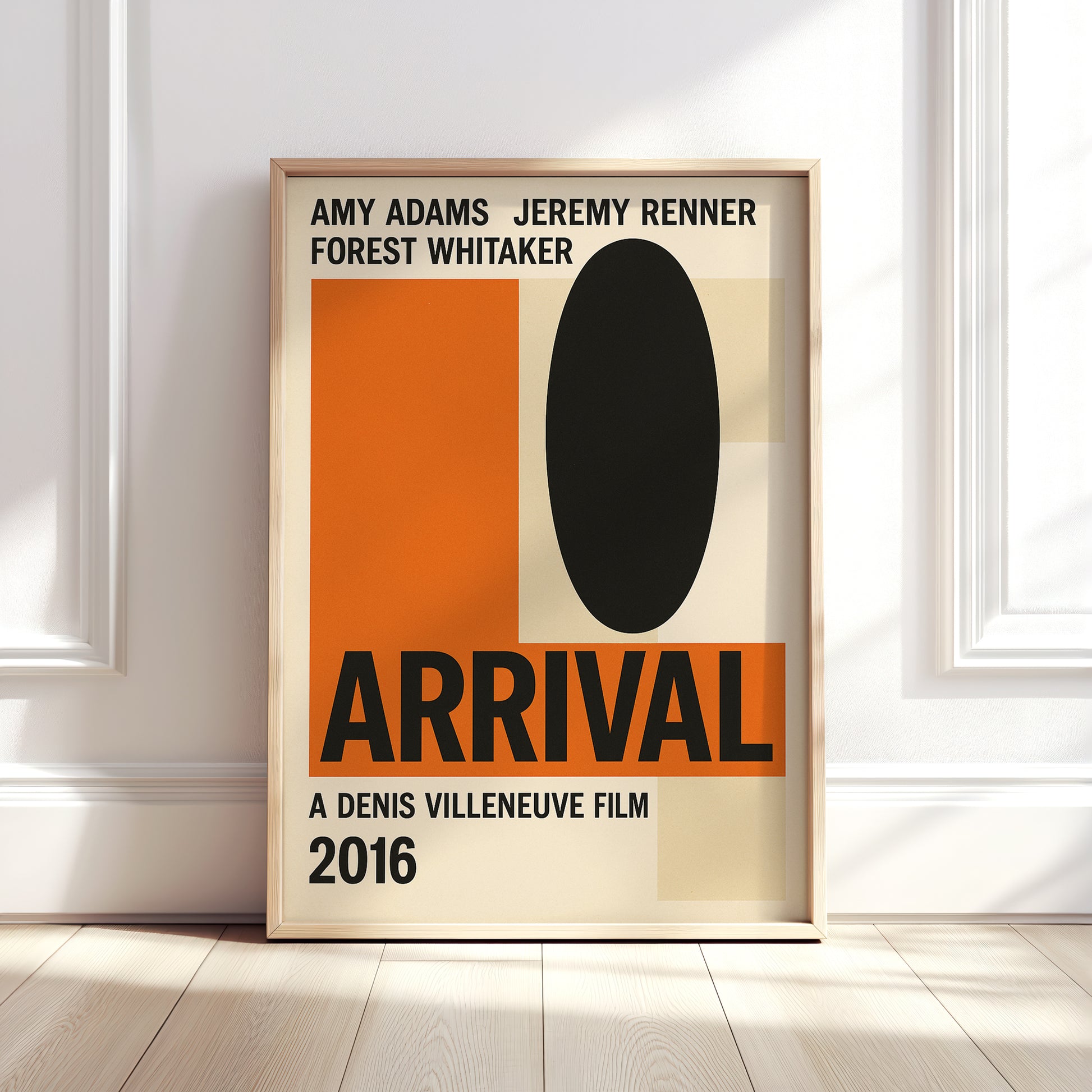 A minimalist reimagining of Denis Villeneuve’s Arrival (2016), designed in the spirit of Swiss Modernism / International Typographic Style. This poster strips the film back to its essential forms — clean lines, a strict grid, and typography-led composition — reflecting the movie’s central themes of communication, time, and clarity.