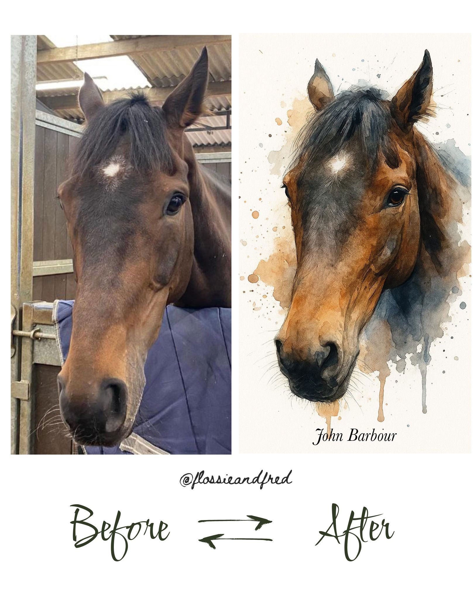 Immortalise your beloved horse or pet with our personalised watercolour-style pet print. Crafted on museum-quality 260gsm art paper, this exquisite artwork captures the unique personality and charm of your furry friend. The perfect gift for horse and pet lovers for birthdays, mother's day, father's day, Christmas, anniversaries, memorial, etc