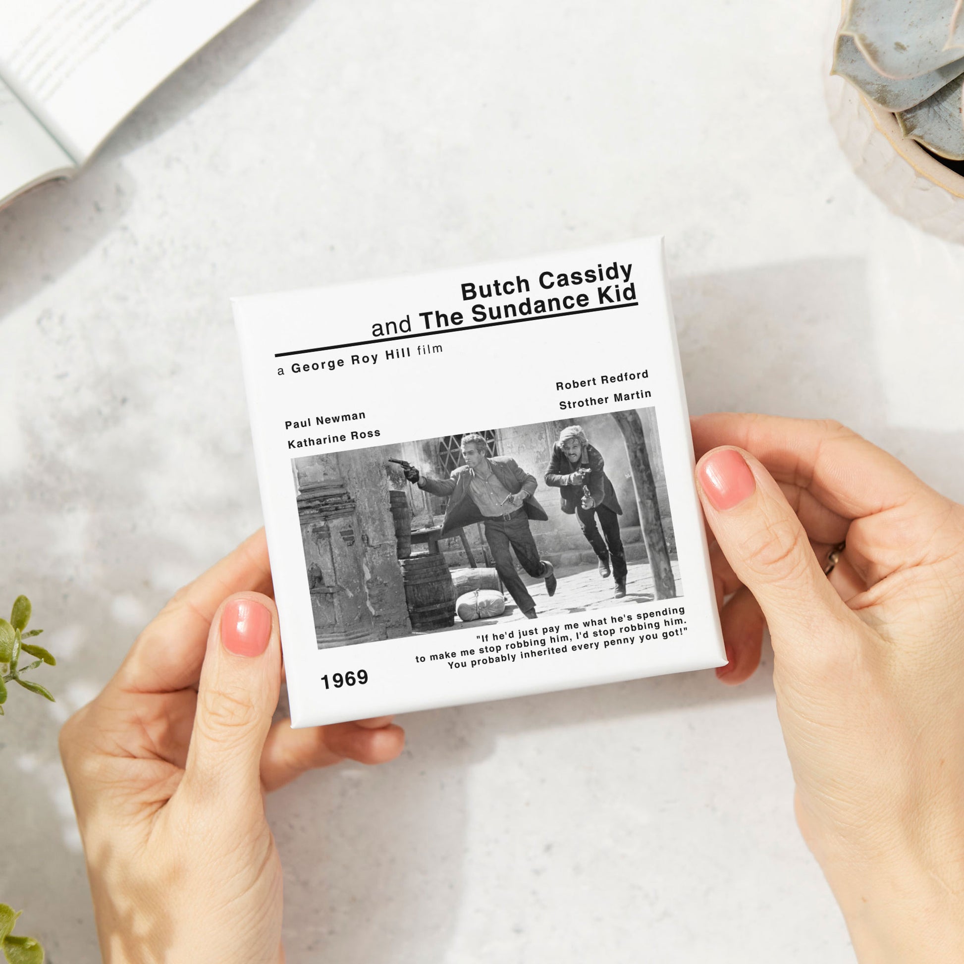 🎞️The modern style movie print of Butch Cassidy adds a touch of nostalgia and cinephile flair to your space. Whether you're a fan of George Hill's works or simply appreciate classic cinema, this coaster is a must-have addition to your collection.