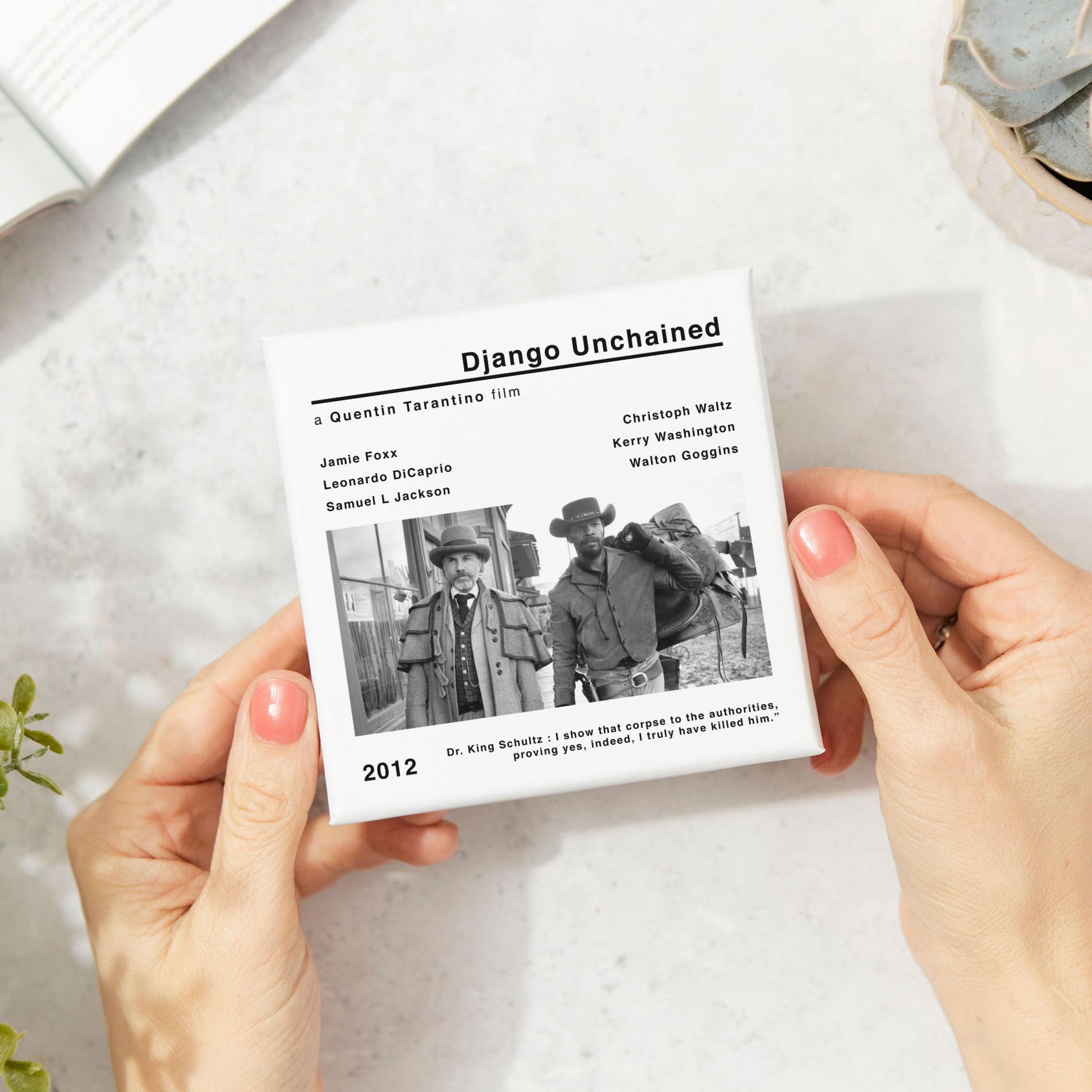 🎞️The modern style movie print of Django Unchained adds a touch of nostalgia and cinephile flair to your space. Whether you're a fan of Quentin Tarantino's works or simply appreciate classic cinema, this coaster is a must-have addition to your collection.