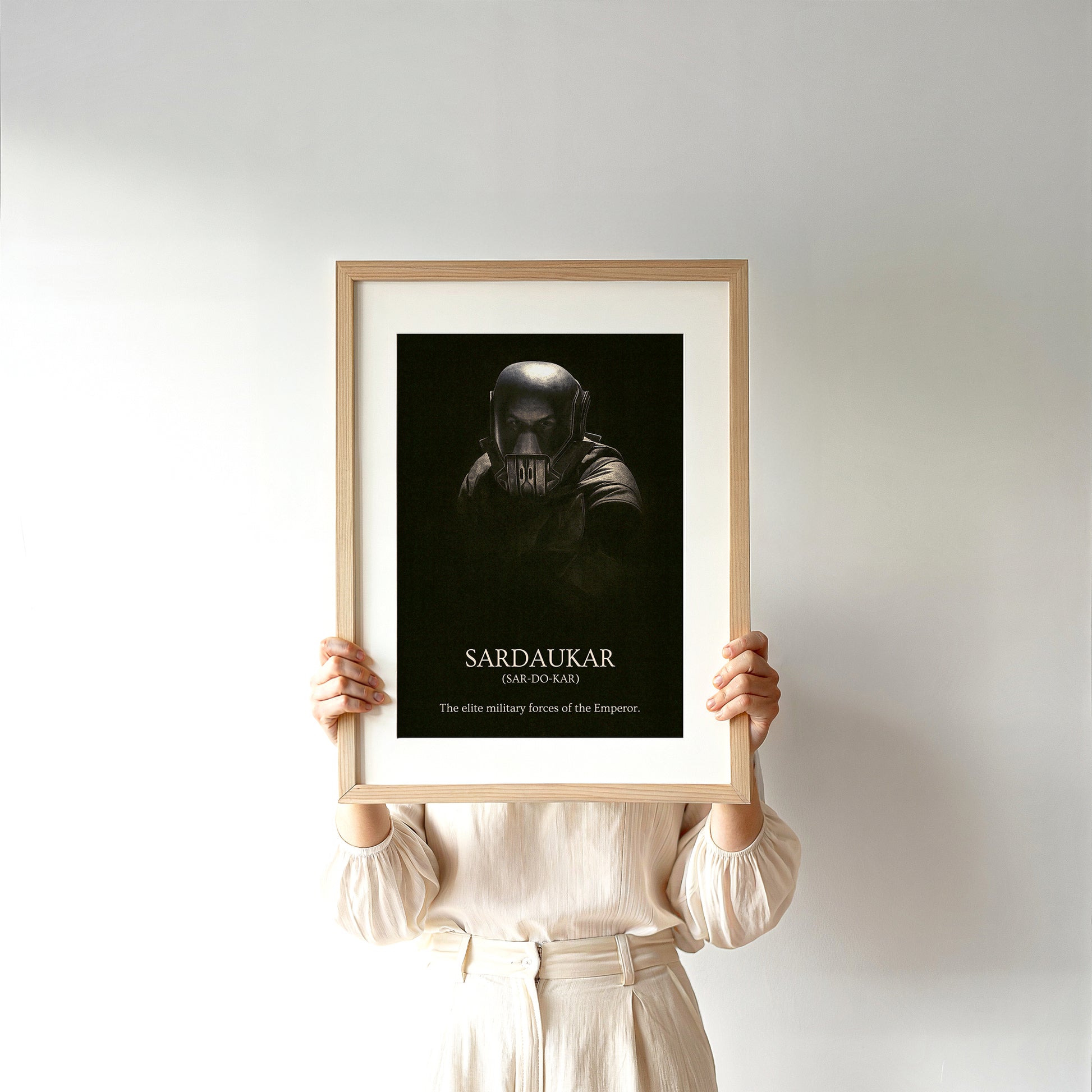 Summon the might of the Emperor’s most feared warriors with this striking Sardaukar poster — inspired by the legendary universe of Dune. Designed in a hauntingly minimalist style, this artwork captures the cold, disciplined power of the Emperor’s elite legions. Cloaked in darkness, the Sardaukar warrior emerges from shadow, his armour and mask rendered in stark, moody contrast — the perfect tribute to the ruthless precision and loyalty that define them.