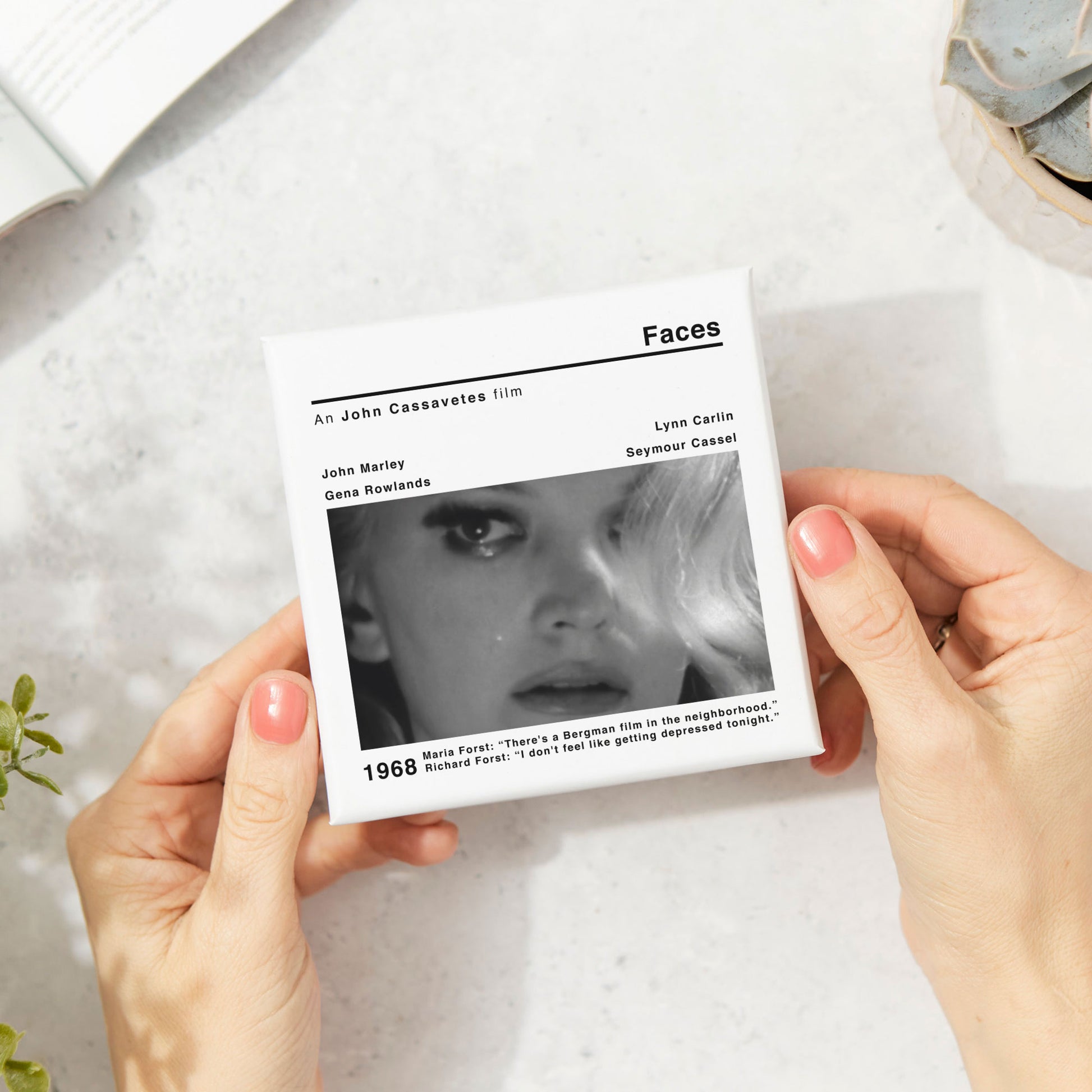 🎞️The modern style movie print of Faces adds a touch of nostalgia and cinephile flair to your space. Whether you're a fan of John Cassavetes's works or simply appreciate classic cinema, this coaster is a must-have addition to your collection.