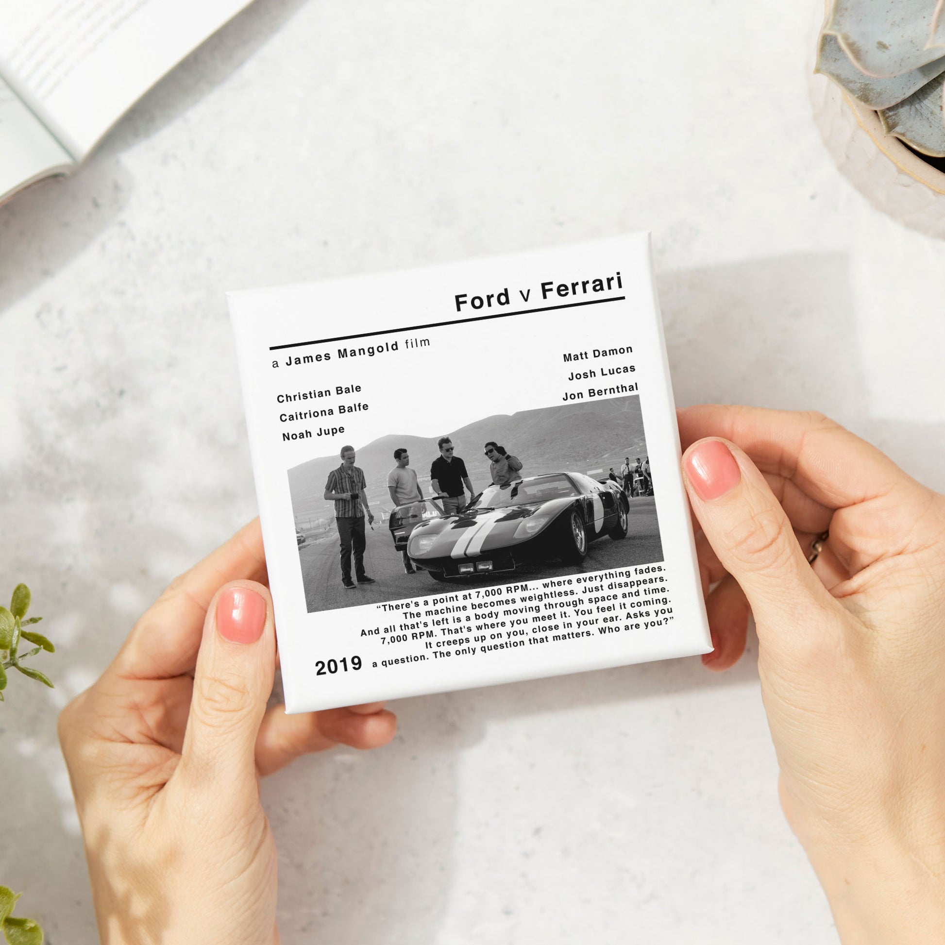 🎞️The modern style movie print of Ford v Ferrari adds a touch of nostalgia and cinephile flair to your space. Whether you're a fan of Jason Mangold's works or simply appreciate classic cinema, this coaster is a must-have addition to your collection.