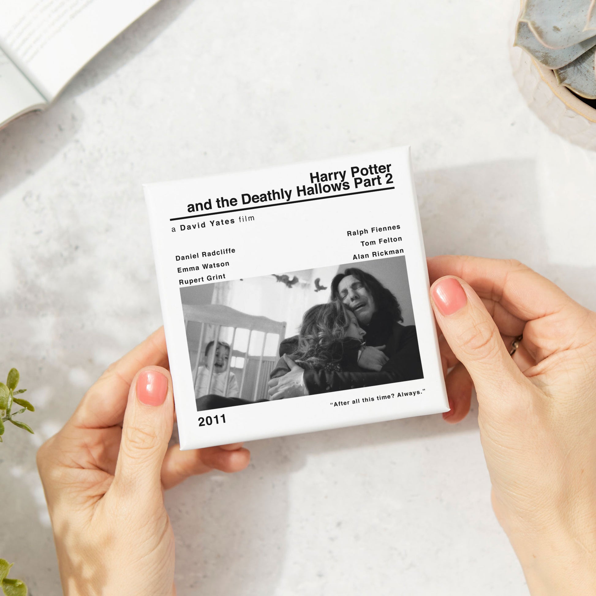 🎞️The modern style movie print of Harry Potter and The Deathly Hallows Part 2 adds a touch of nostalgia and cinephile flair to your space. Whether you're a fan of David Yates' works or simply appreciate classic cinema, this coaster is a must-have addition to your collection.