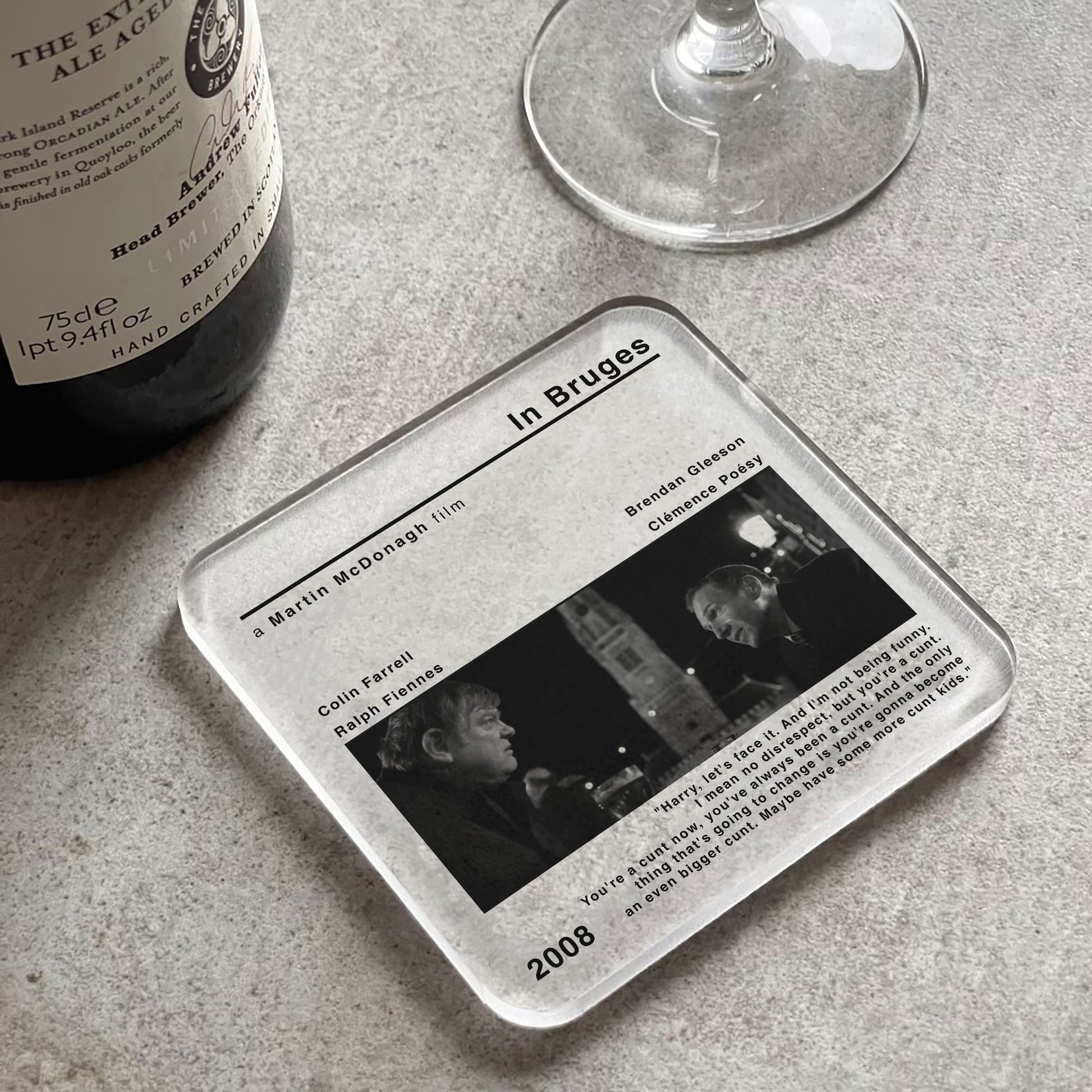🎞️The modern style movie print of In Bruges adds a touch of nostalgia and cinephile flair to your space. Whether you're a fan of Martin McDonagh's works or simply appreciate classic cinema, this coaster is a must-have addition to your collection.