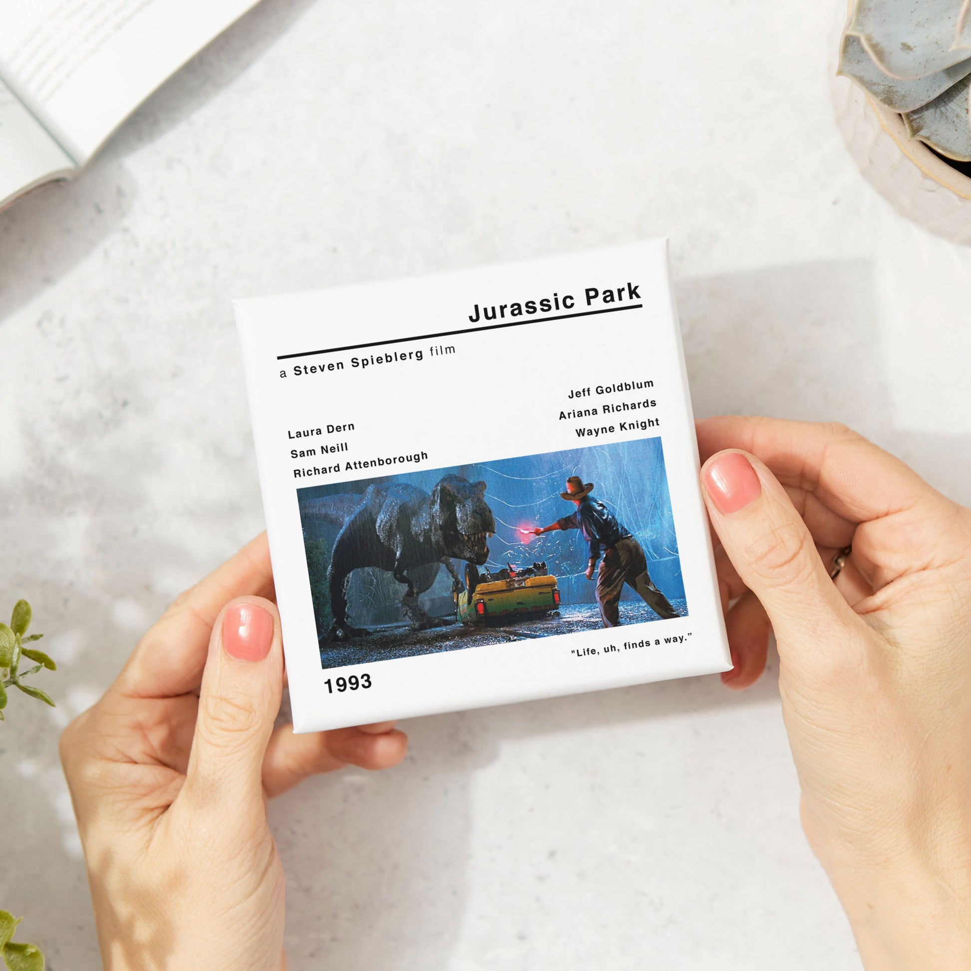 🎞️The modern style movie print of Jurassic Park's adds a touch of nostalgia and cinephile flair to your space. Whether you're a fan of Steven Spielberg's works or simply appreciate classic cinema, this coaster is a must-have addition to your collection.