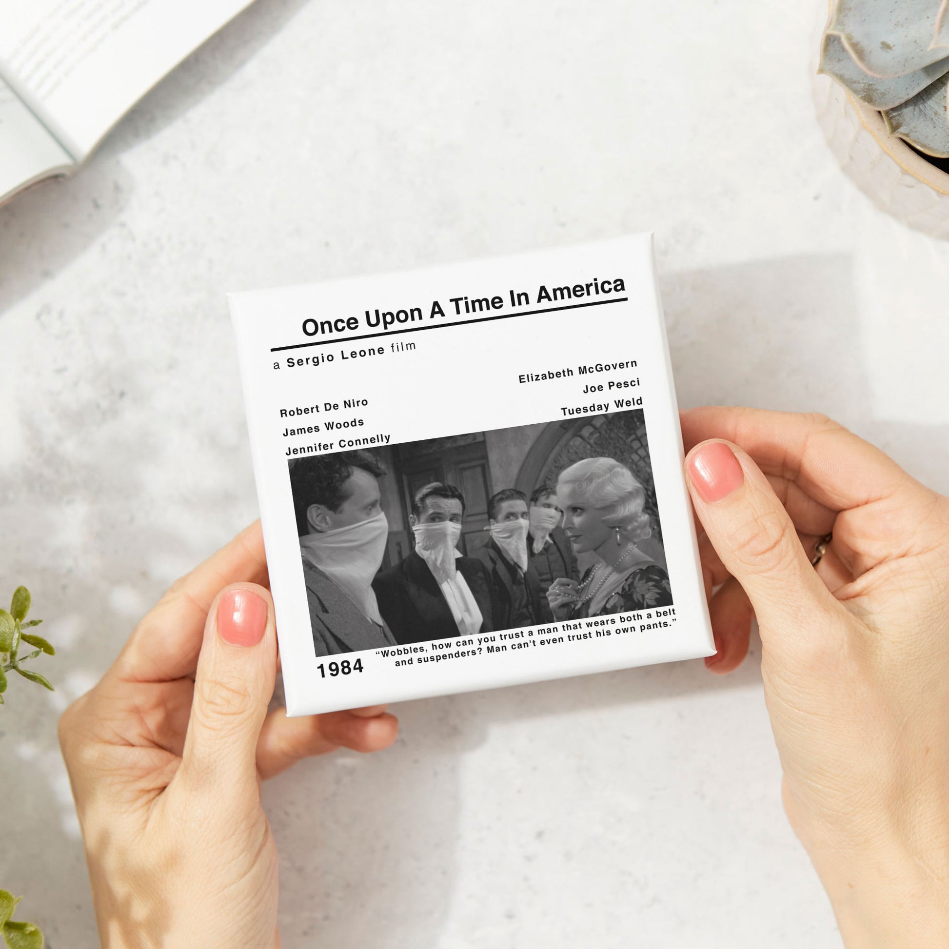 🎞️The modern style movie print of Once Upon A Time In America adds a touch of nostalgia and cinephile flair to your space. Whether you're a fan of Sergio Leone's works or simply appreciate classic cinema, this coaster is a must-have addition to your collection.