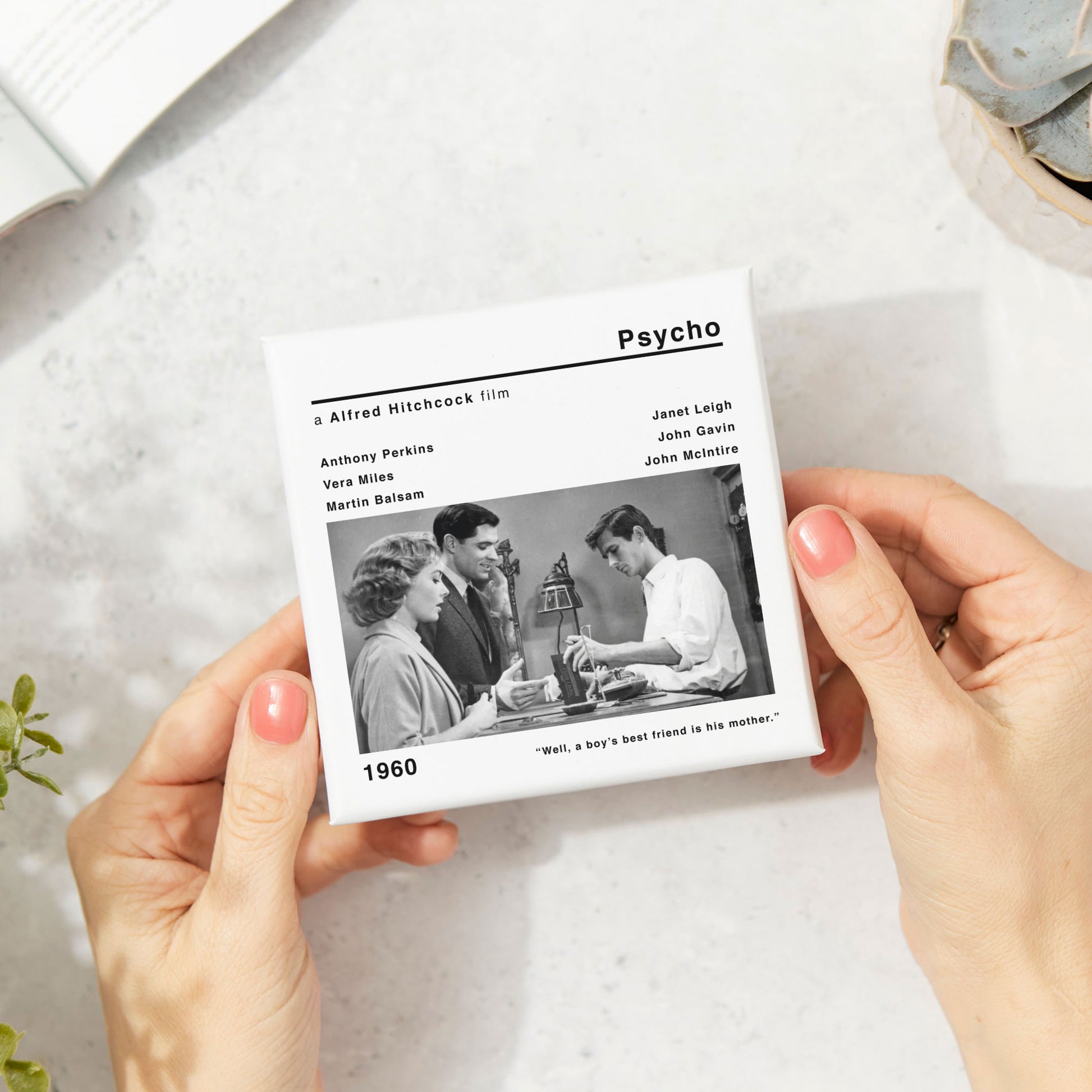 🎞️The modern style movie print of Psycho adds a touch of nostalgia and cinephile flair to your space. Whether you're a fan of Alfred Hitchcock's works or simply appreciate classic cinema, this coaster is a must-have addition to your collection.