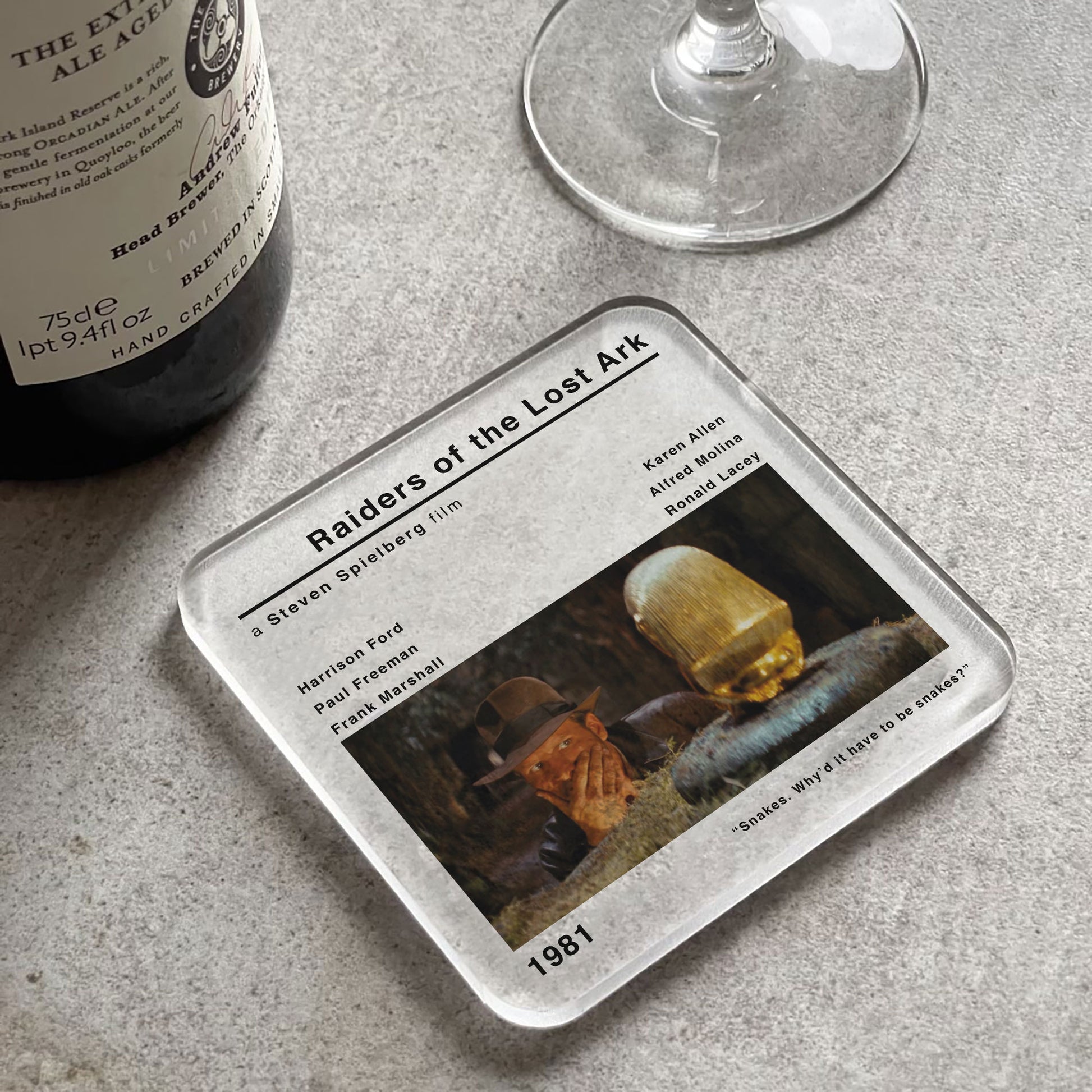 🎞️The modern style movie print of Raiders Of The Lost Ark adds a touch of nostalgia and cinephile flair to your space. Whether you're a fan of Steven Spielberg's works or simply appreciate classic cinema, this coaster is a must-have addition to your collection.