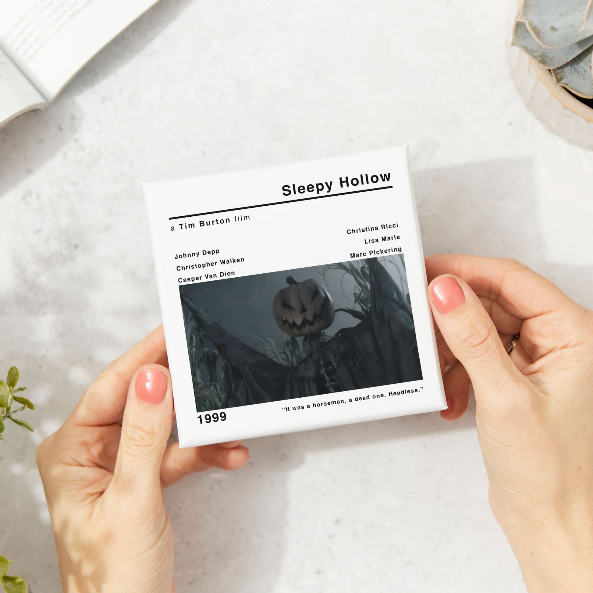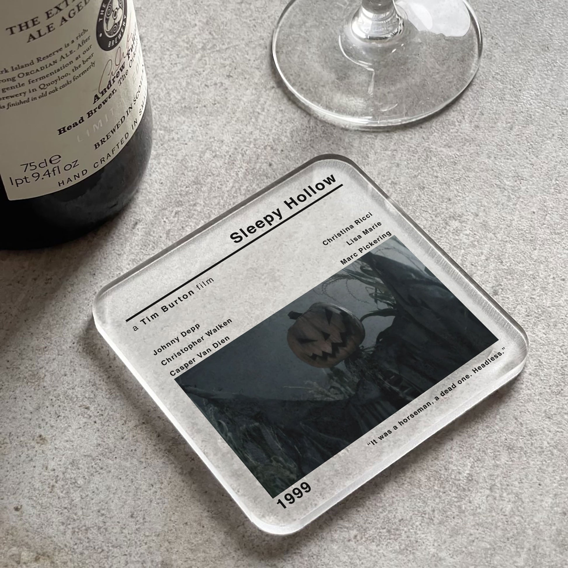 🎞️The modern style movie print of Sleepy Hollow adds a touch of nostalgia and cinephile flair to your space. Whether you're a fan of Tim Burton's works or simply appreciate classic cinema, this coaster is a must-have addition to your collection.