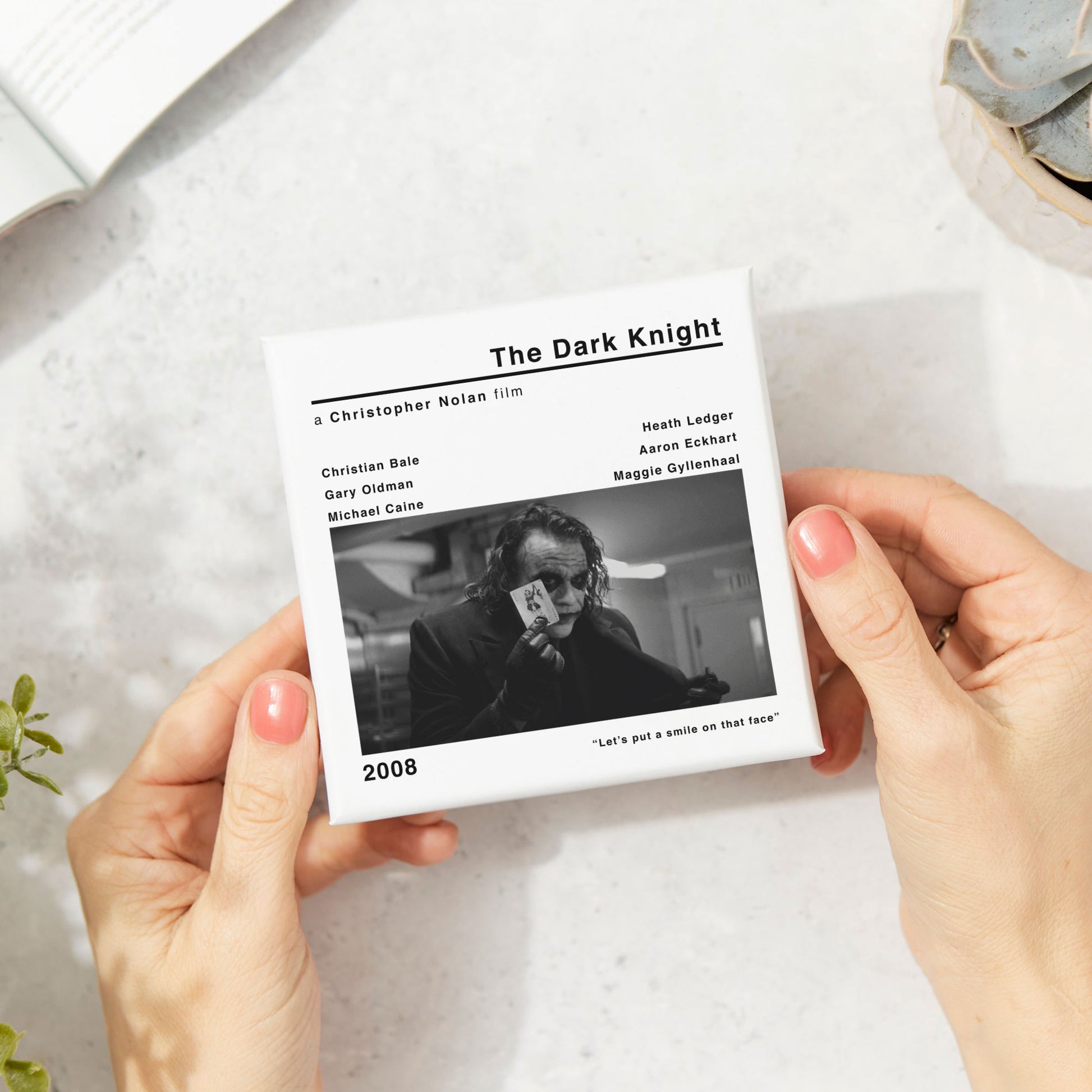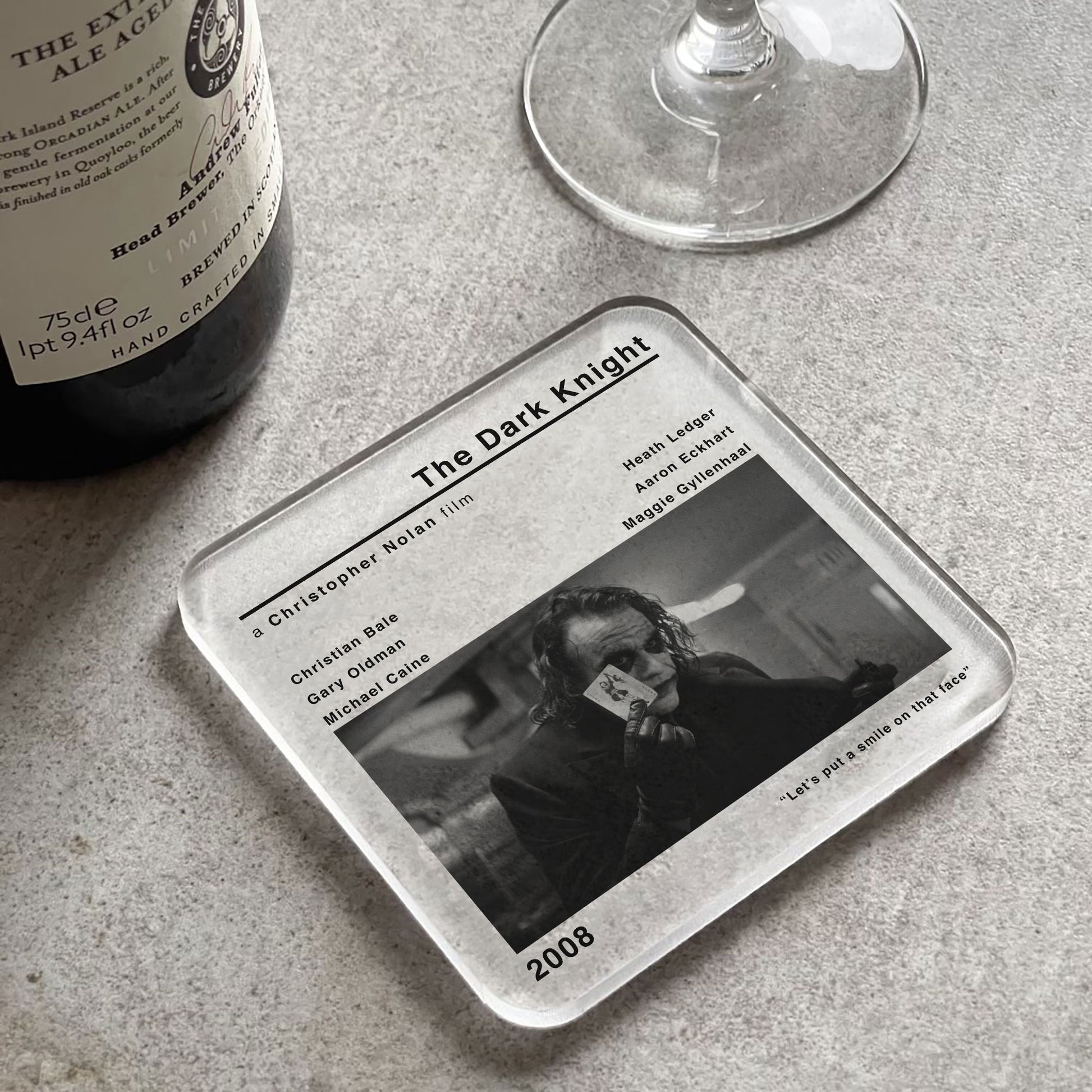 🎞️The modern style movie print of The Dark Knight adds a touch of nostalgia and cinephile flair to your space. Whether you're a fan of Christopher Nolan's works or simply appreciate classic cinema, this coaster is a must-have addition to your collection.
