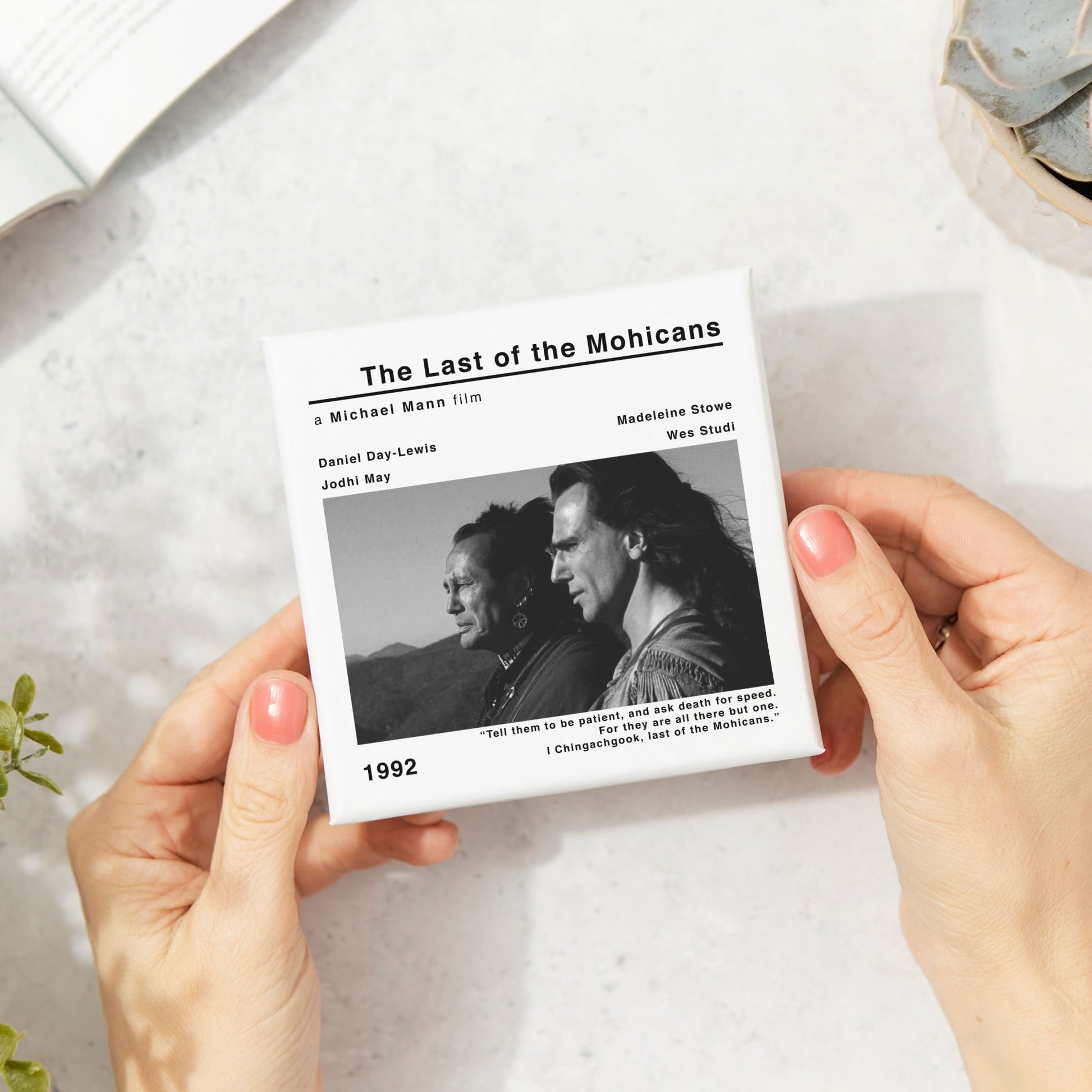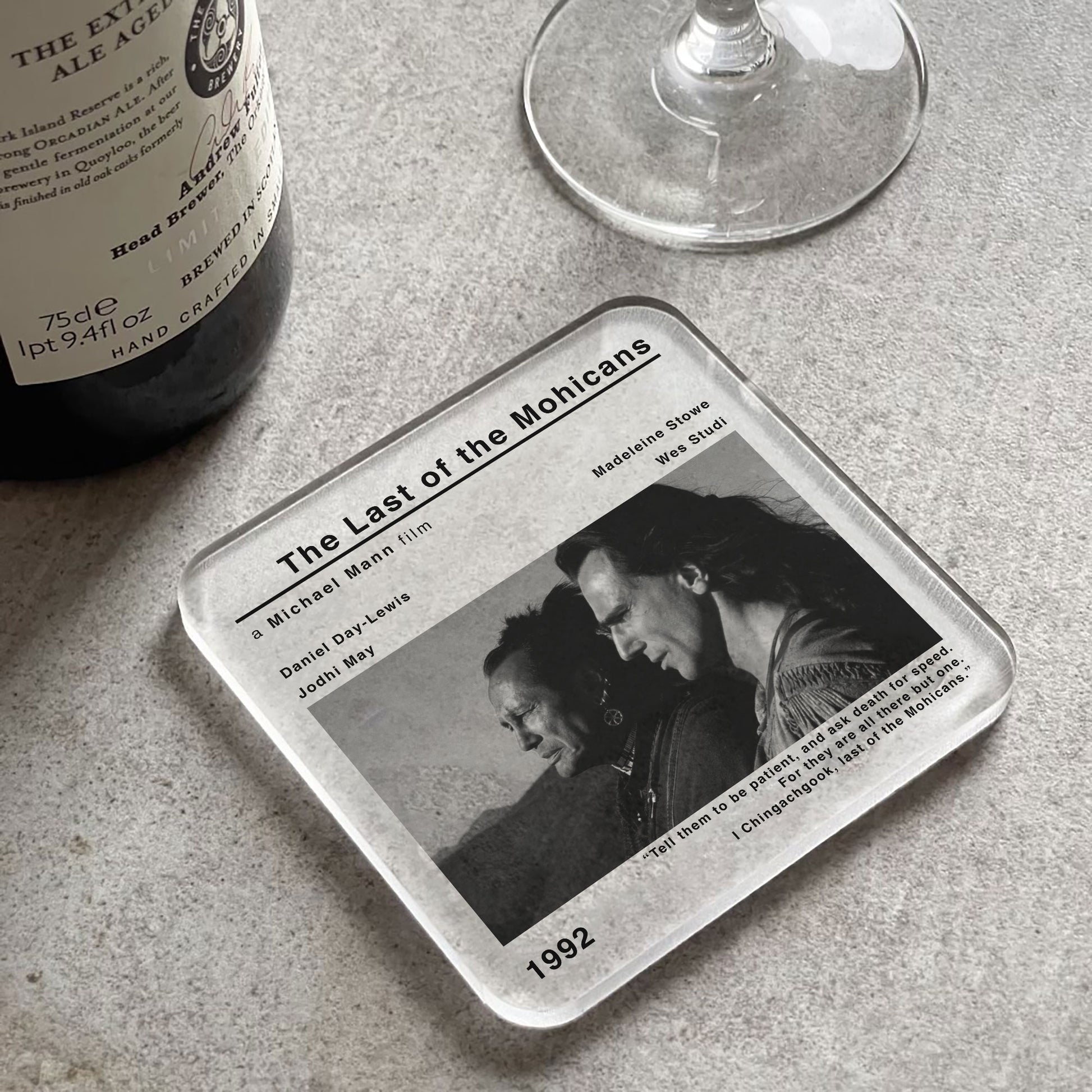 🎞️The modern style movie print of The Last Of The Mohicans adds a touch of nostalgia and cinephile flair to your space. Whether you're a fan of Michael Mann's works or simply appreciate classic cinema, this coaster is a must-have addition to your collection.