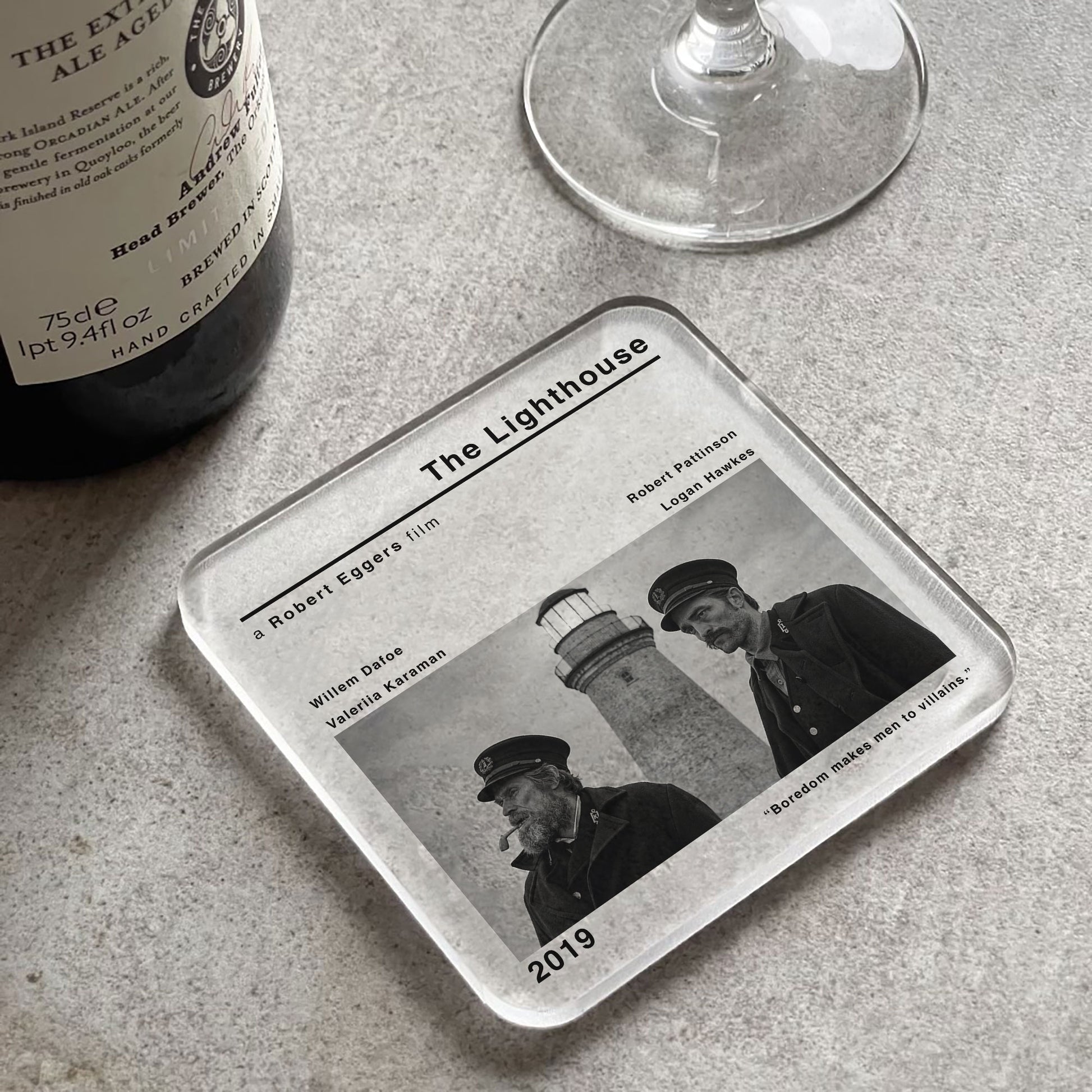 Add to your home decor with this contemporary style The Lighthouse drinks coaster. Designed in a minimalist movie poster style featuring Robert Eggers' iconic film, this coaster combines timeless charm with practical functionality.