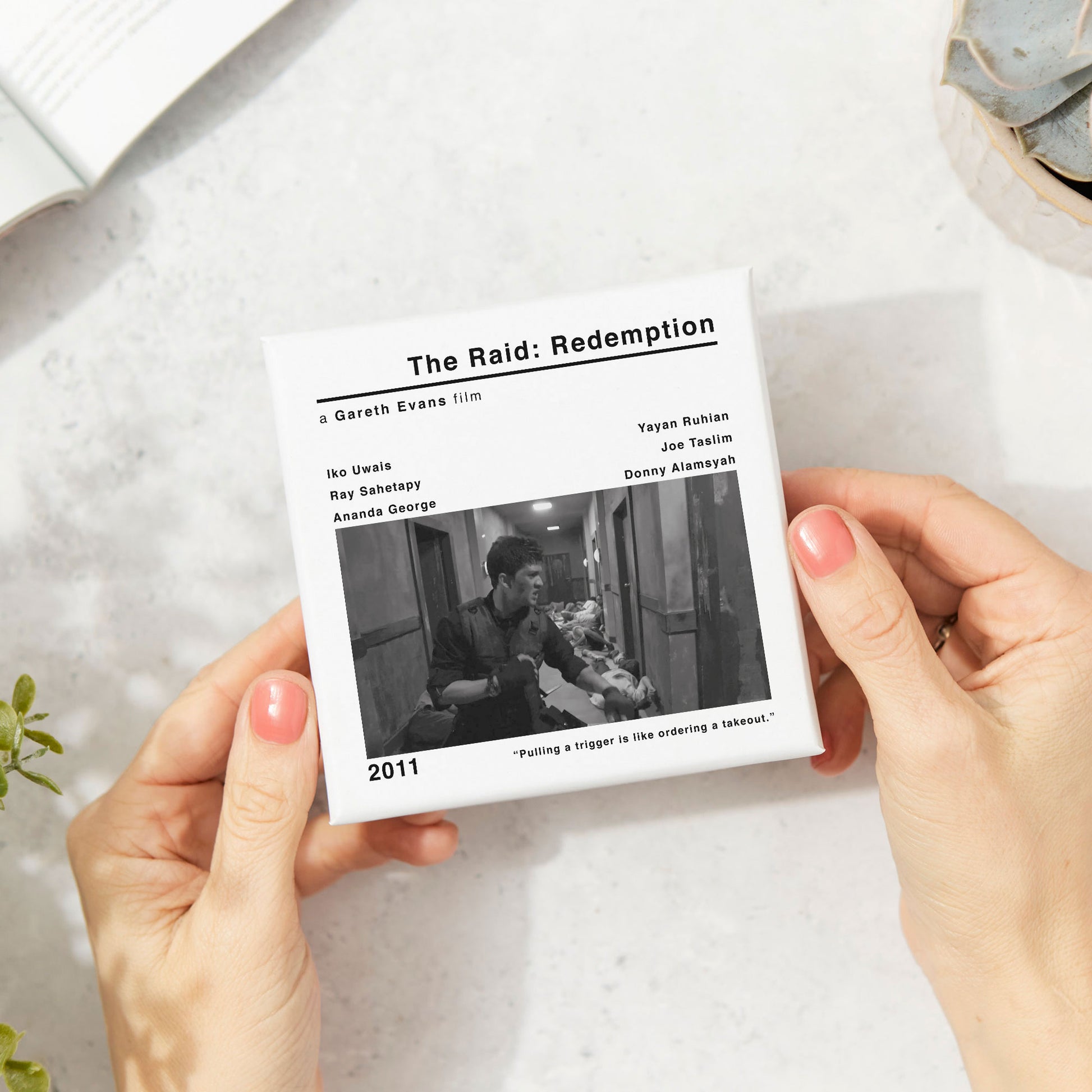 🎞️The modern style movie print of The Raid: Redemption adds a touch of nostalgia and cinephile flair to your space. Whether you're a fan of Gareth Evans' works or simply appreciate classic cinema, this coaster is a must-have addition to your collection.