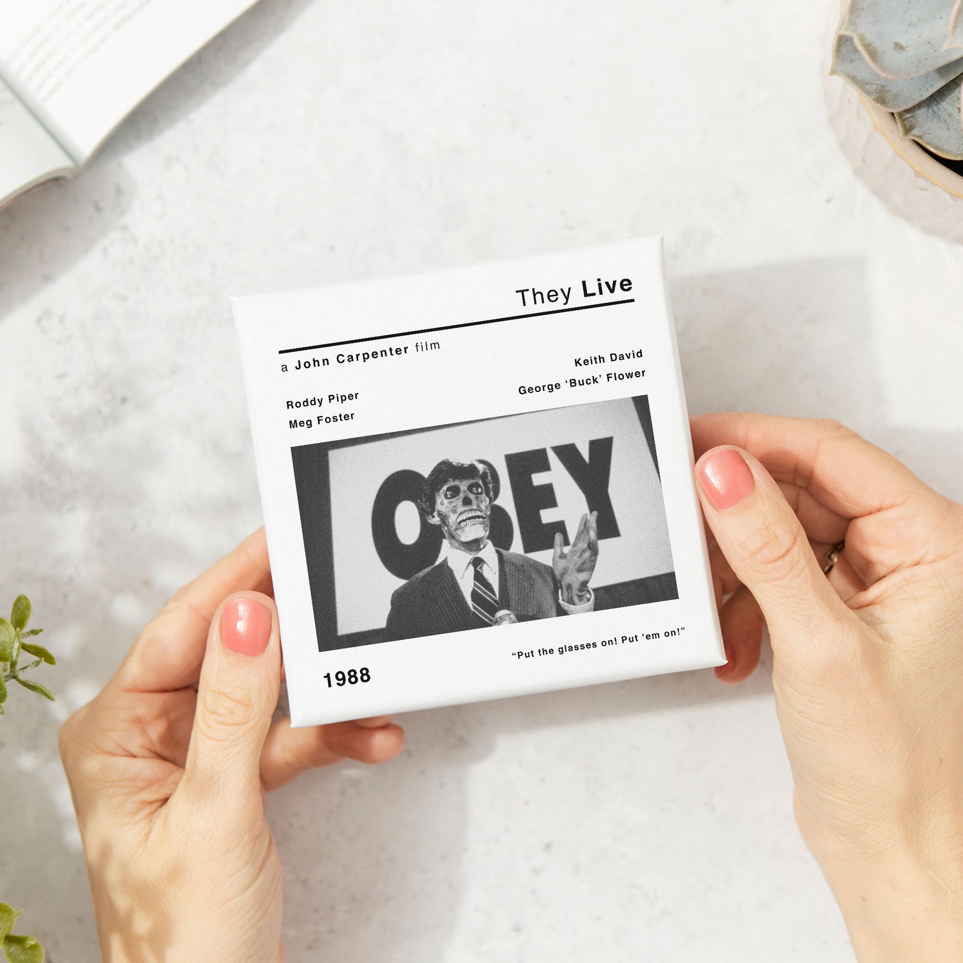 Add to your home decor with this contemporary style They Live coaster. Designed in a minimalist movie poster style featuring John Carpenter's iconic film, this coaster combines timeless charm with practical functionality.