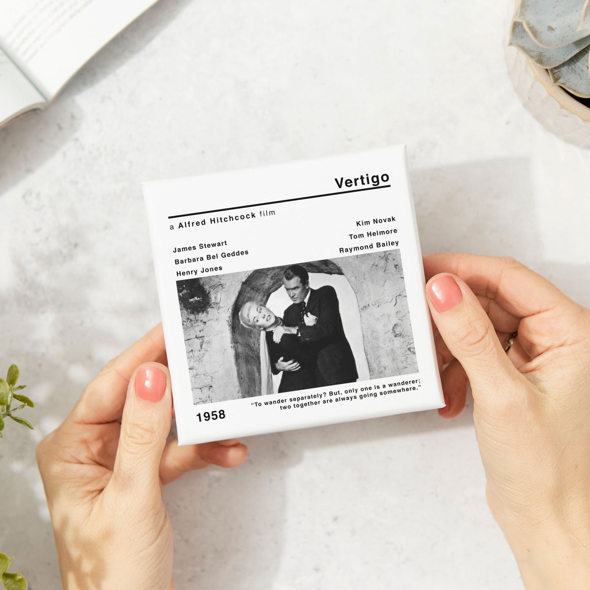 🎞️The modern style movie print of Vertigo adds a touch of nostalgia and cinephile flair to your space. Whether you're a fan of Alfred Hitchcock's works or simply appreciate classic cinema, this coaster is a must-have addition to your collection.
